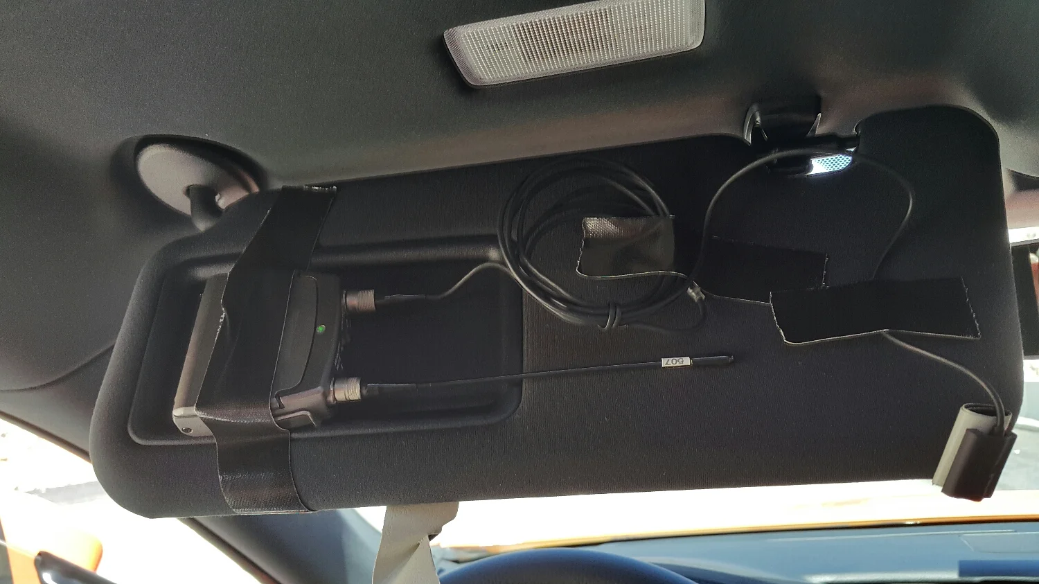 Here is a pic of my new WisyCom radios in the sun visor: